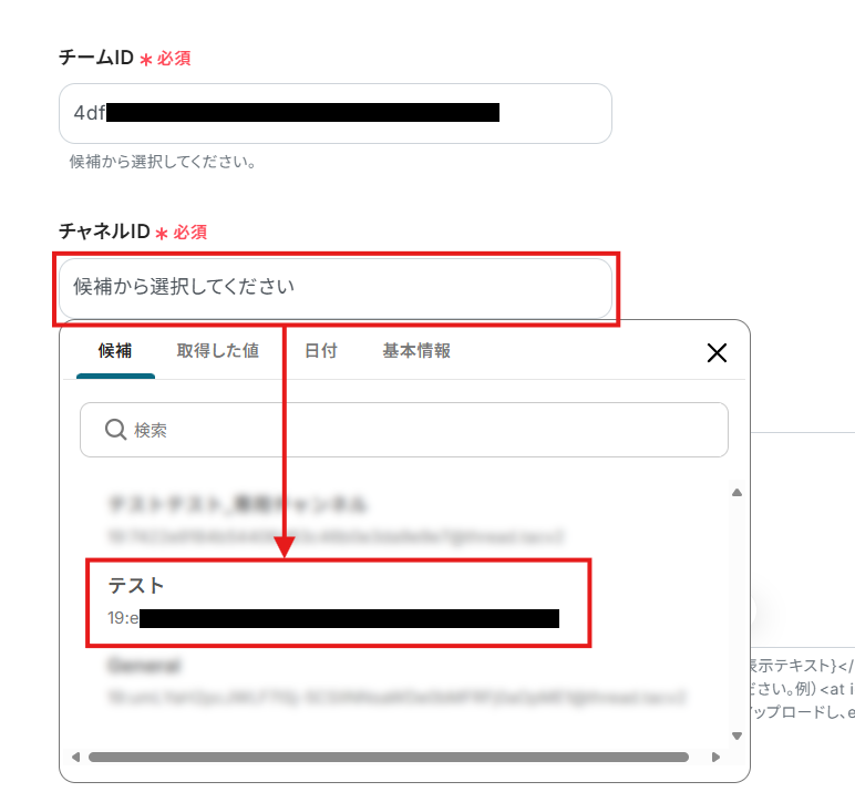 選択したチーム内の候補が表示されるため、対象となるチャネルを選択してください。