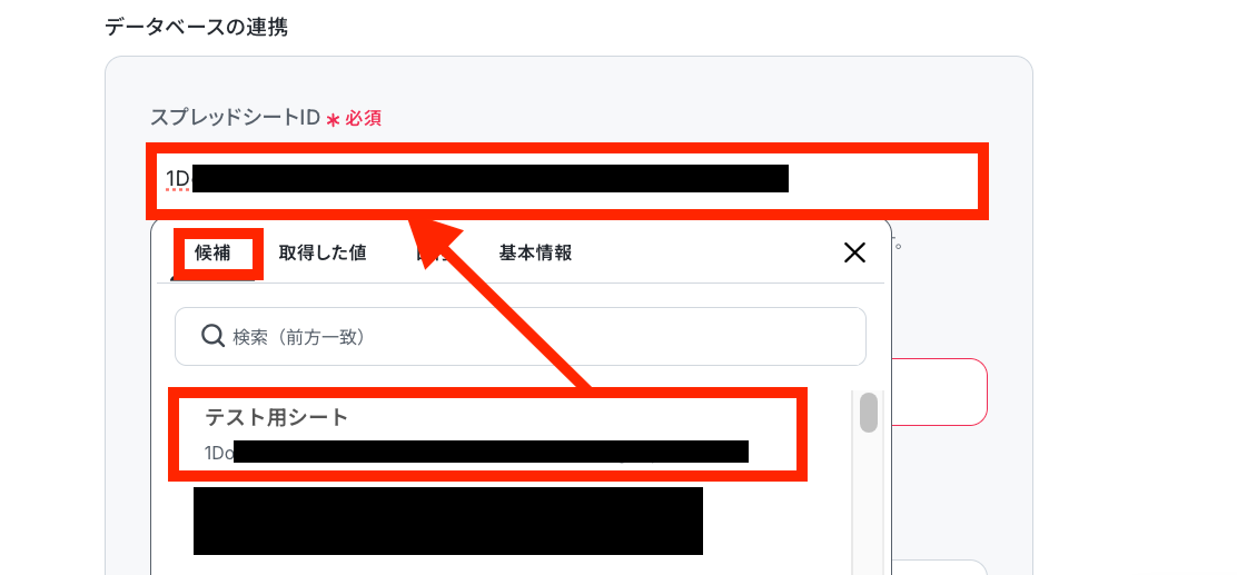 同じ要領で「スプレッドシートのタブ名」も候補から選択します。