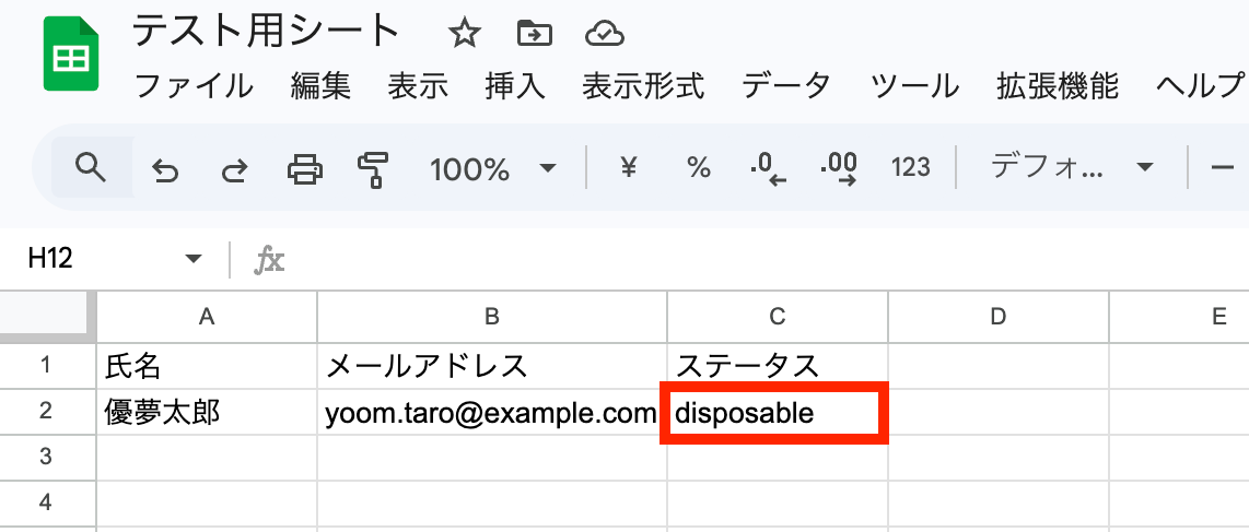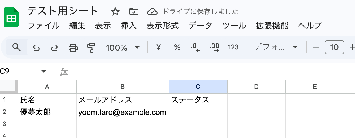 今回はテスト用に以下のようなシートを準備しました!