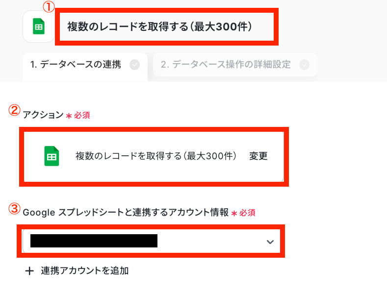 ステップ4:Google スプレッドシートで複数のレコード取得設定