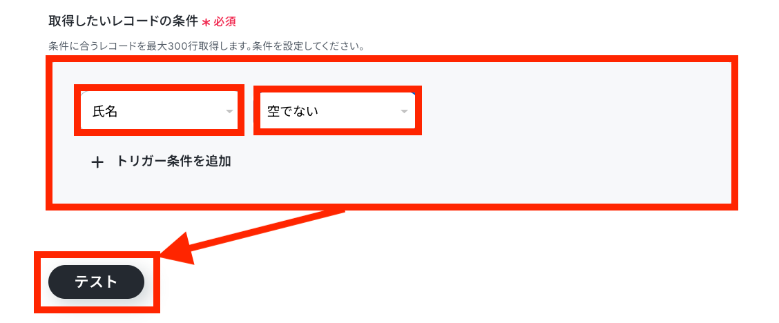 「取得したレコードの条件」を設定します。