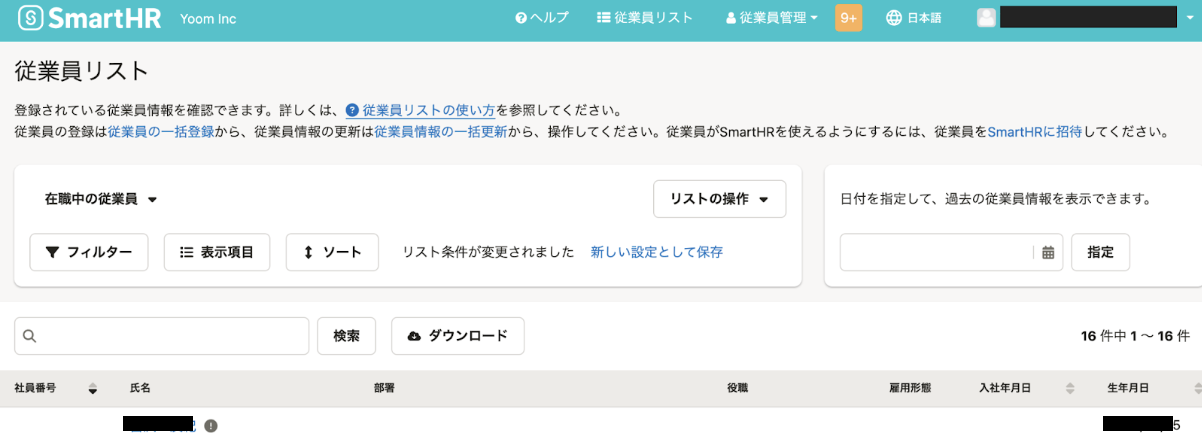 全ての項目の設定が完了したら「テスト」をクリックし、ステップ4で読み取った内容がSmartHRの従業員一覧に反映されているか確認しましょう。