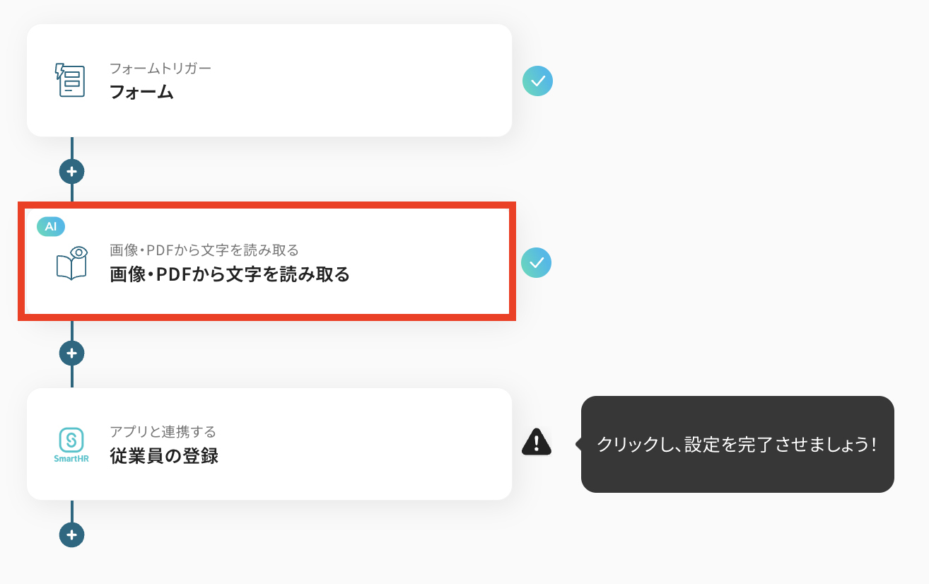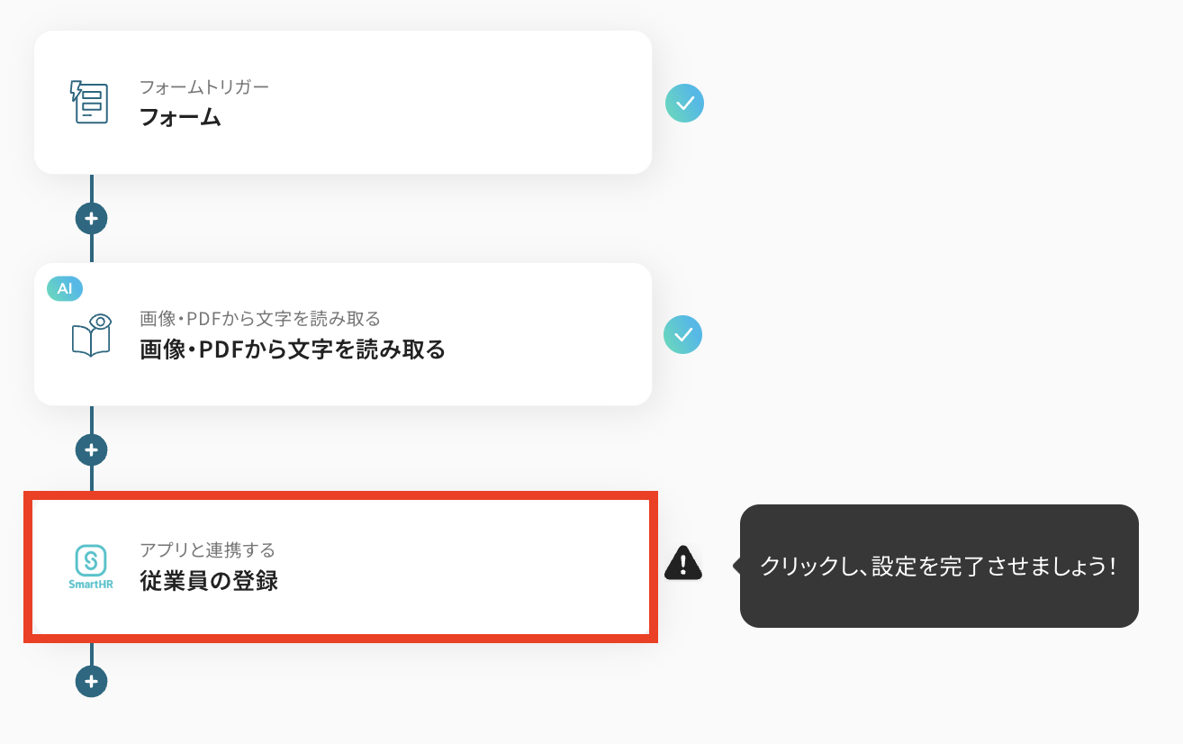 これで、フォームから履歴書が送信されるたびに、自動でOCR処理が実行され、SmartHRに従業員データが登録されるようになりますよ!