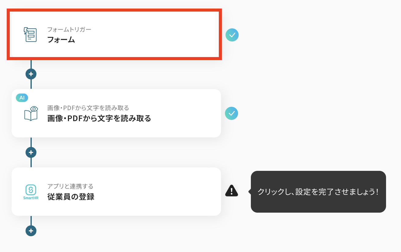 ここでは、「Yoomのフォーム機能を使って送信された履歴書をOCRで読み取り、SmartHRに従業員データを自動で追加する」フローの作成手順を詳しく解説!