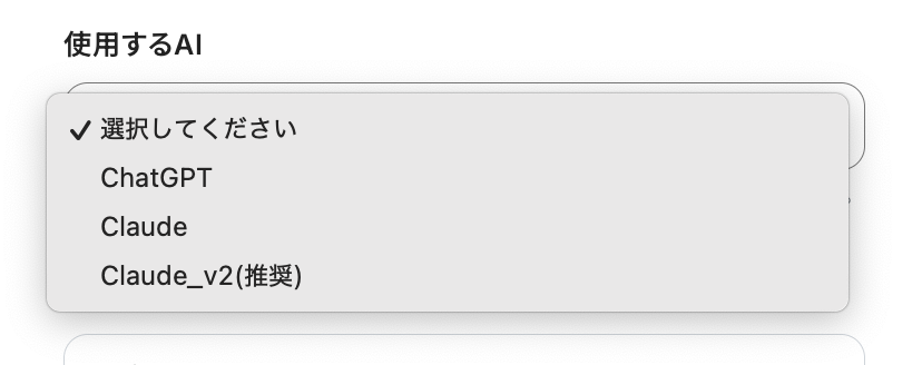 使用するAIは、プルダウンメニューから選択します。