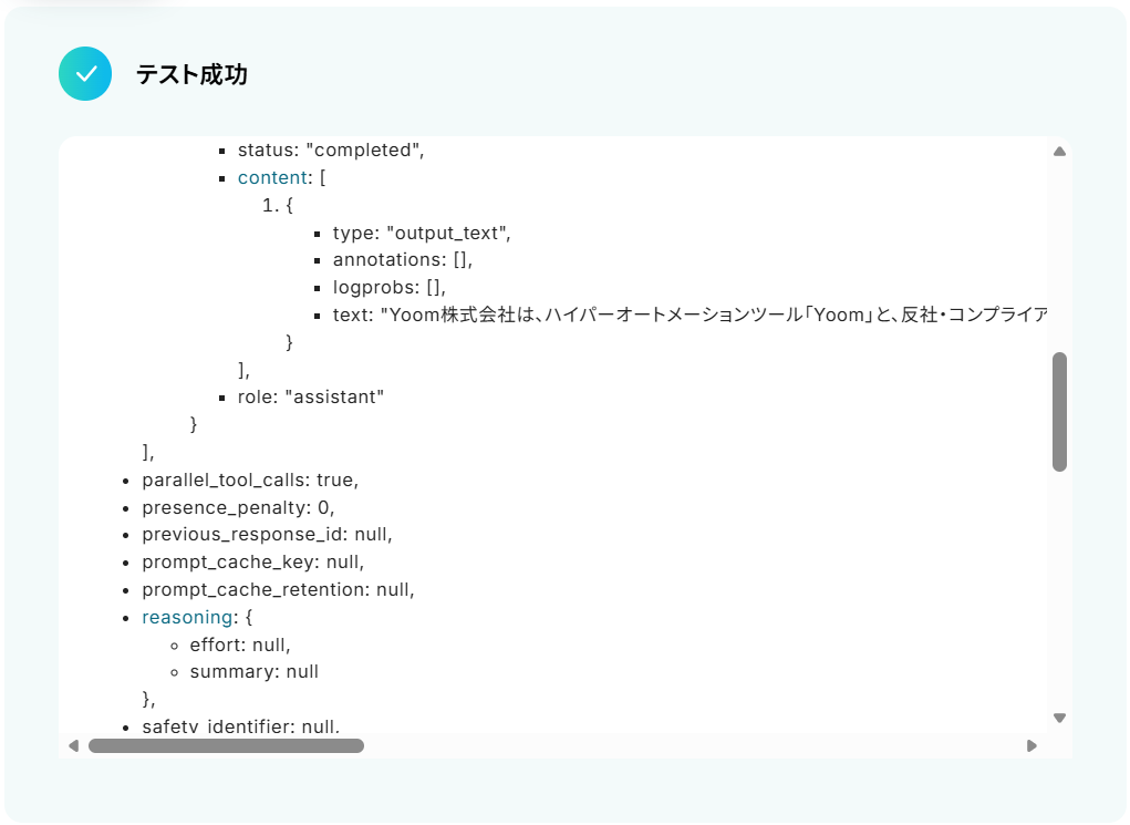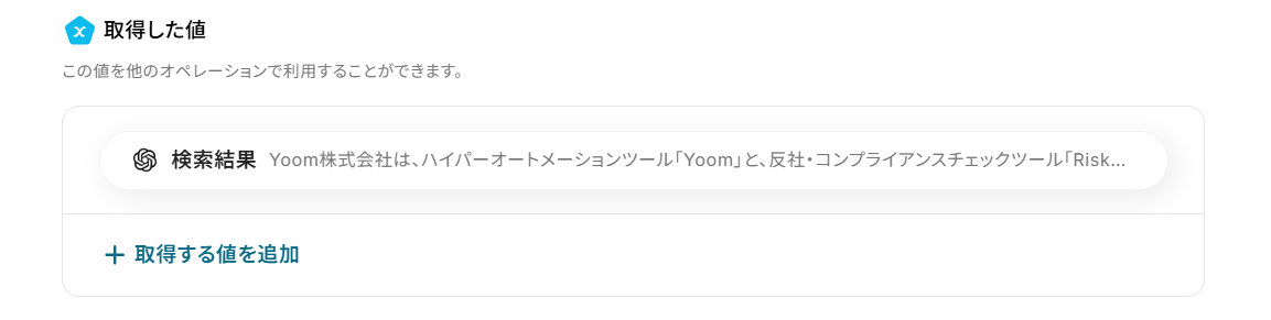 OpenAIの「web検索を実施(レスポンスAPI)」アクション時の「検索内容」にて自社のニーズに合わせてAIへ指示することができます。