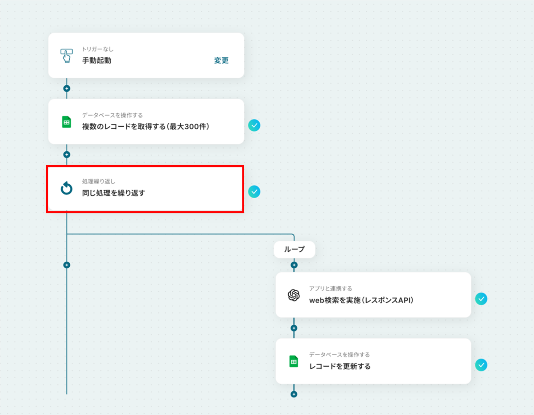 ※「同じ処理を繰り返す」オペレーションは、チームプランまたはサクセスプランが必要です。