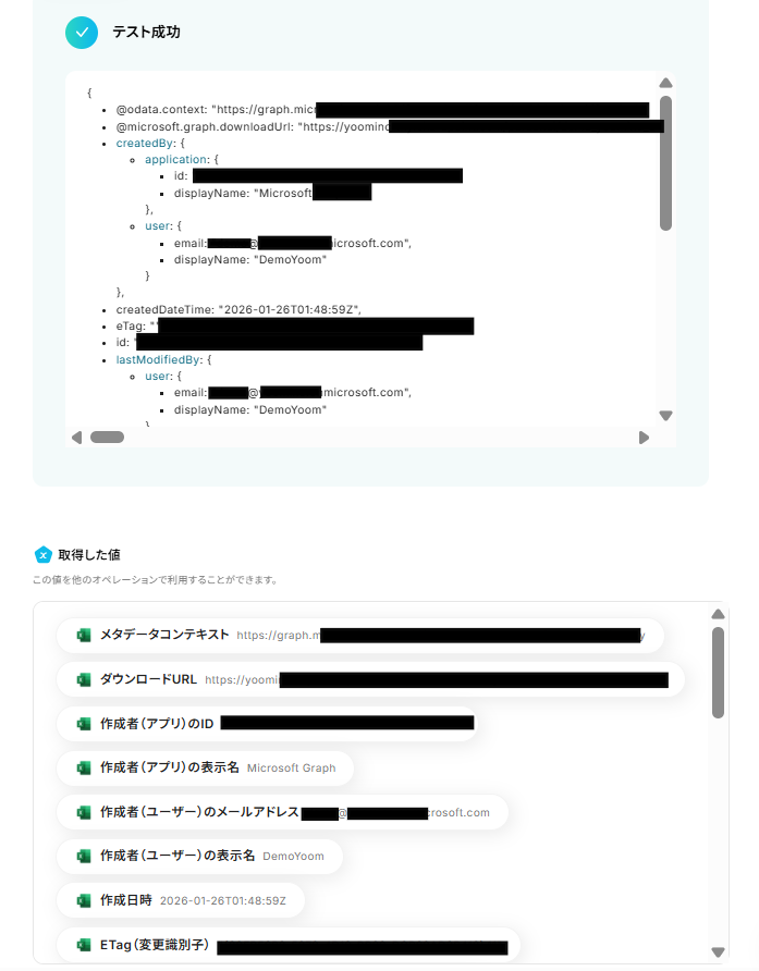 テストが成功し、値が取得できれば、フローに取得した値が活用できます。