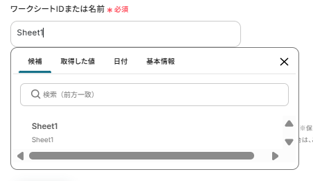 ドライブアイテムIDが設定できたら、ワークシートはボックスから選択します。