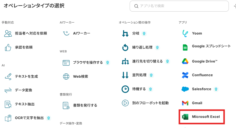 ステップ1:Microsoft Excelをマイアプリ連携 ここでは、YoomとMicrosoft Excelを連携して、操作が行えるようにしていきます。