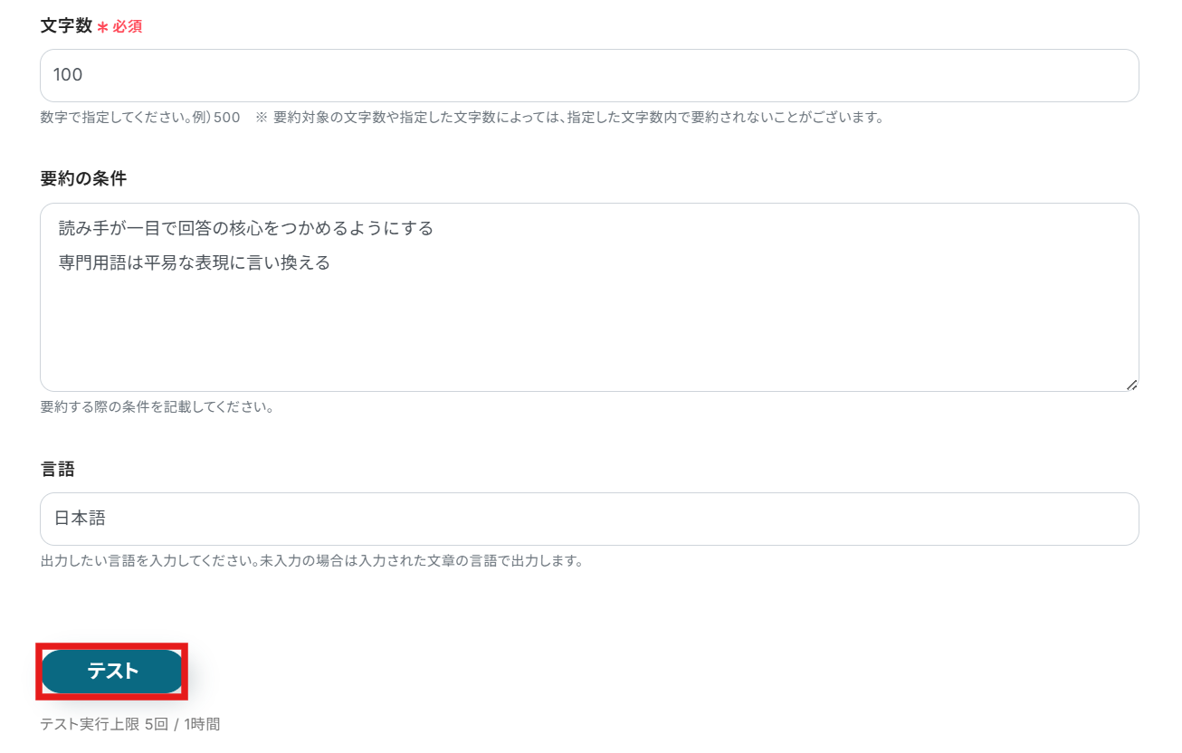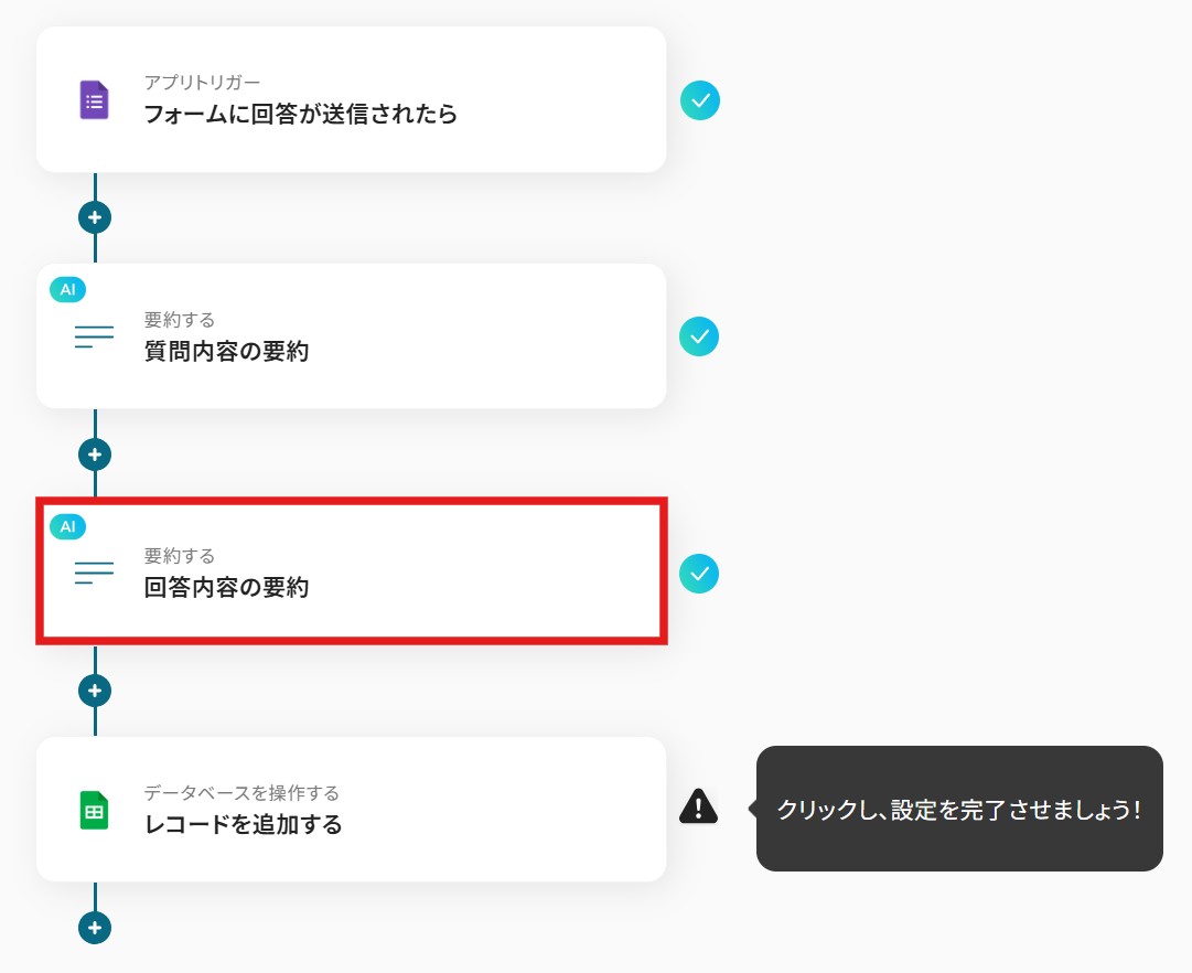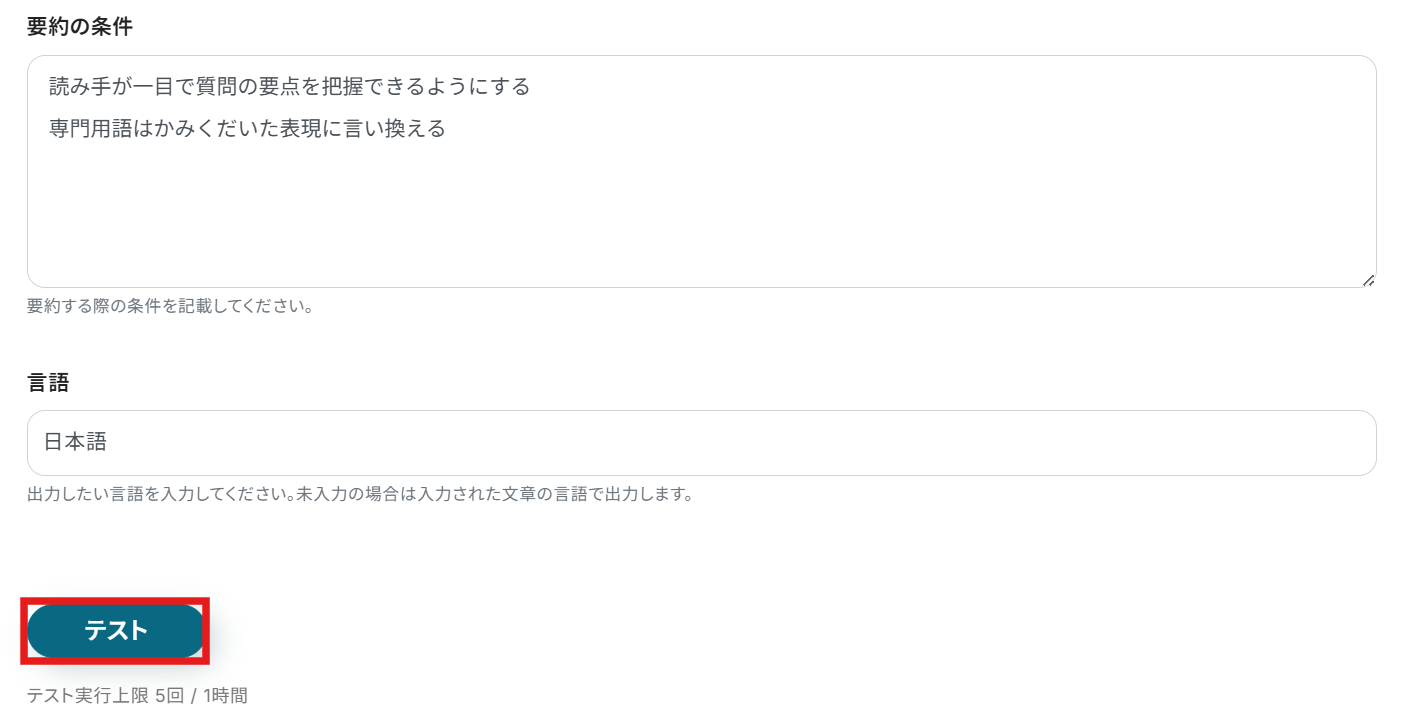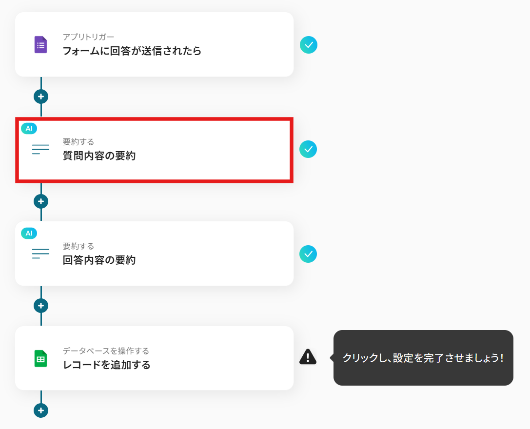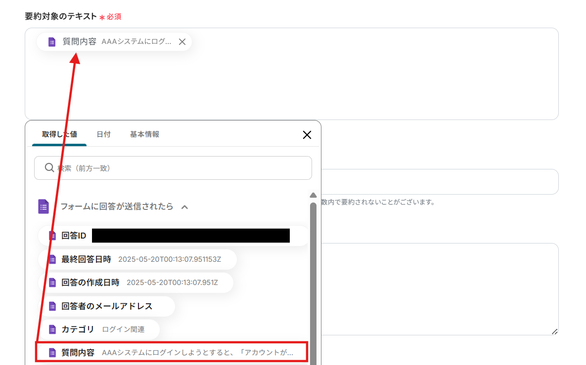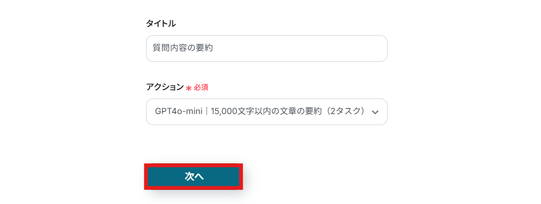 先ほど設定した質問内容の要約とやることは同じです。