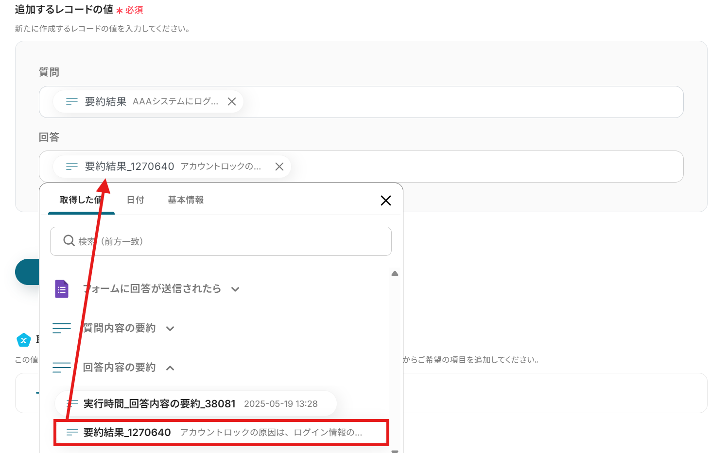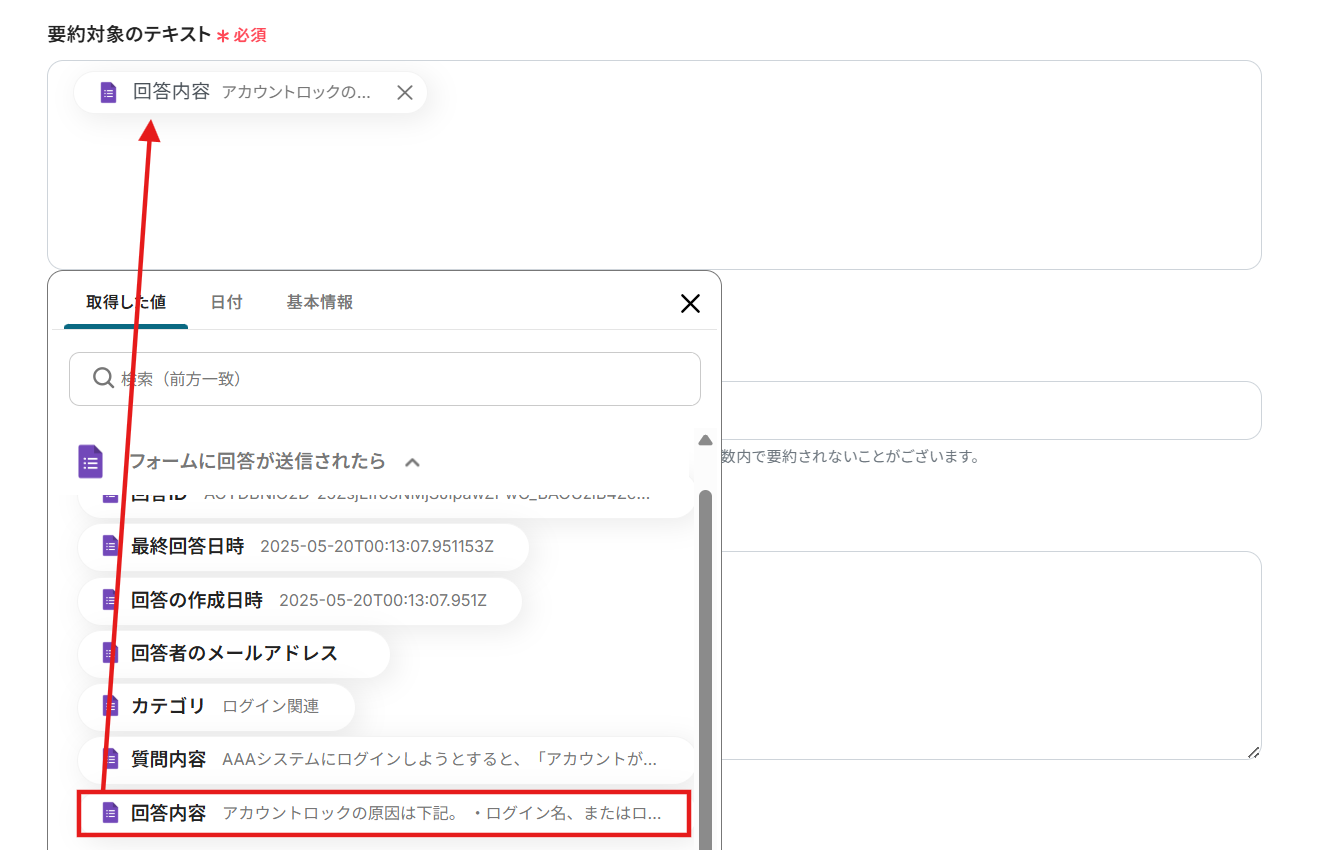 要約内容のテキストは、今回は回答内容を引用しましょう。