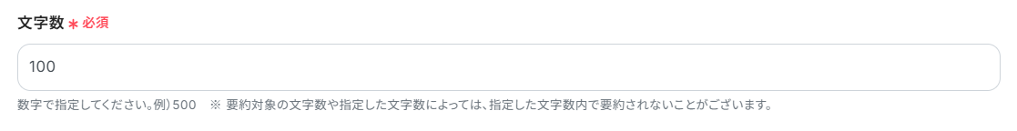 文字数:数字で入力します。今回はデフォルトのままにしておきます。