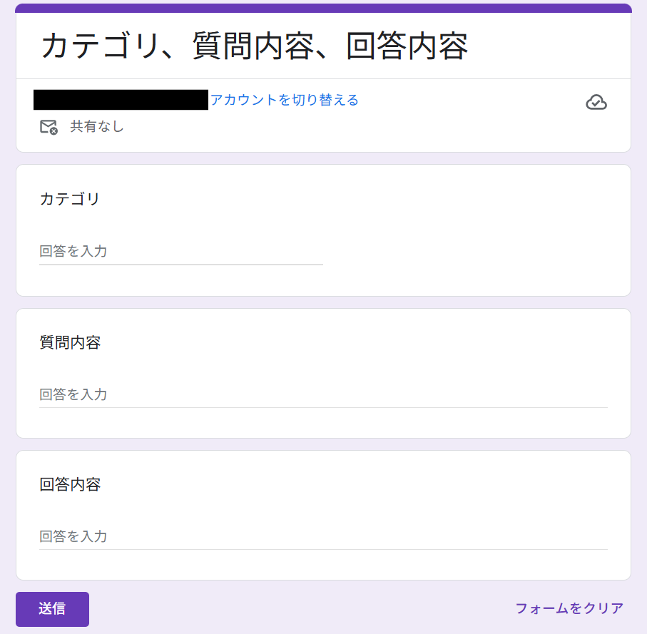 設定が終わったらテストのため、Googleフォームで回答者としてフォームに記入し、送信してください。