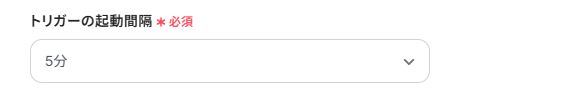 トリガーの起動間隔はプルダウンから選んでください。 トリガーの起動タイミングは、5分、10分、15分、30分、60分から設定できます。