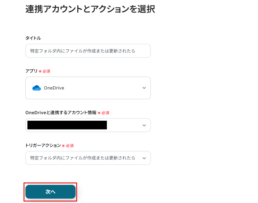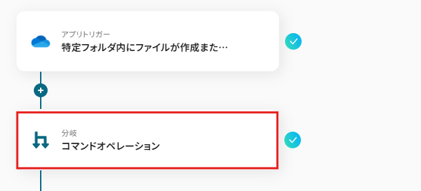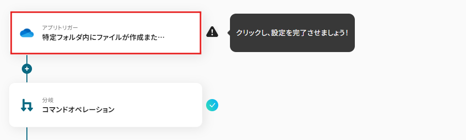 まずはアプリトリガーの設定です。 「特定フォルダ内にファイルが作成または更新されたら」をクリックしてください。