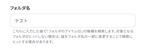 フォルダ名のキーワードを入力しておきます。 アイテムIDを検索しやすいキーワードを設定してください。