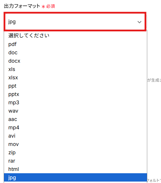 「入力フォーマット」と「出力フォーマット」を候補から選択しましょう。