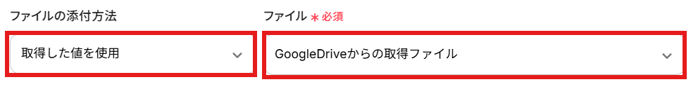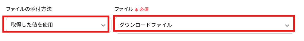「ファイルの添付方法」 →「取得した値を使用」