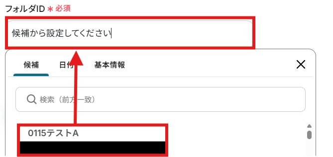 作成したフォルダの「フォルダID」を候補から選択しましょう。