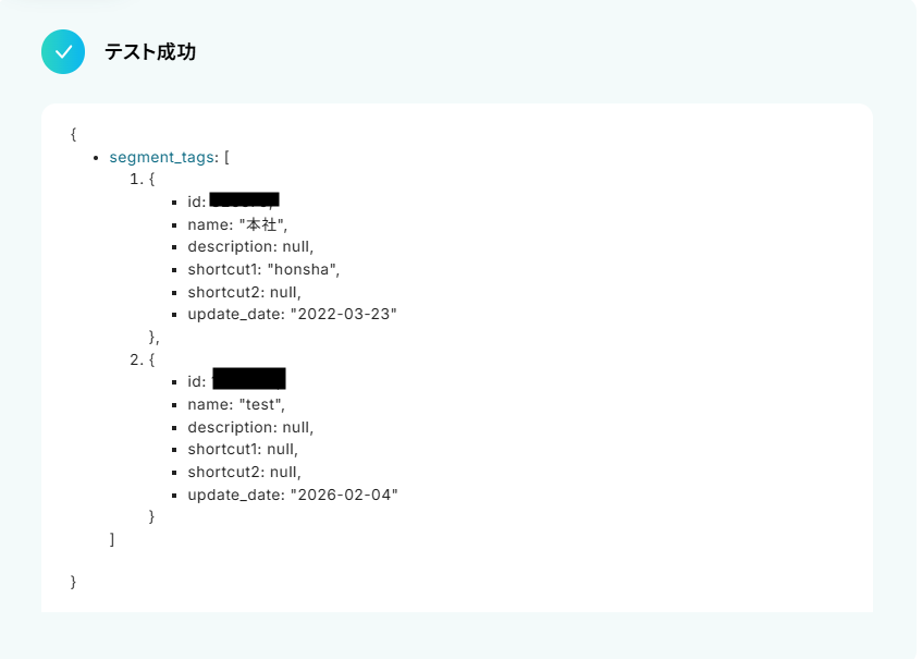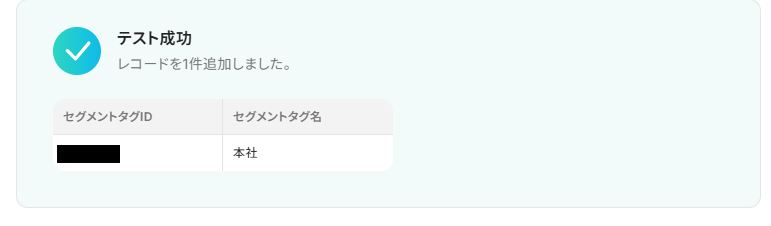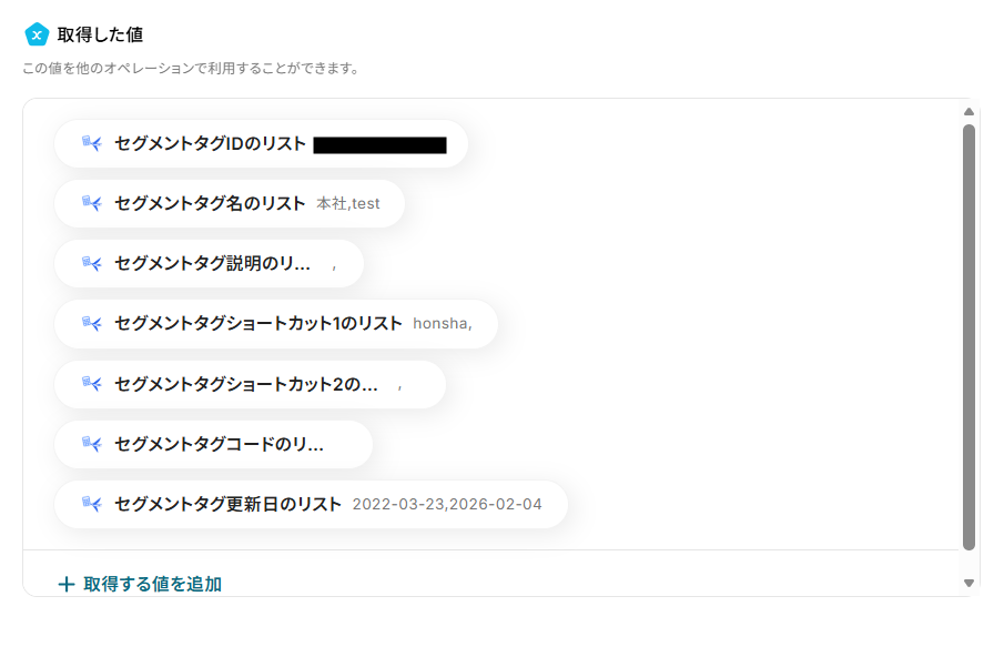 これでセグメントタグが取得されました。