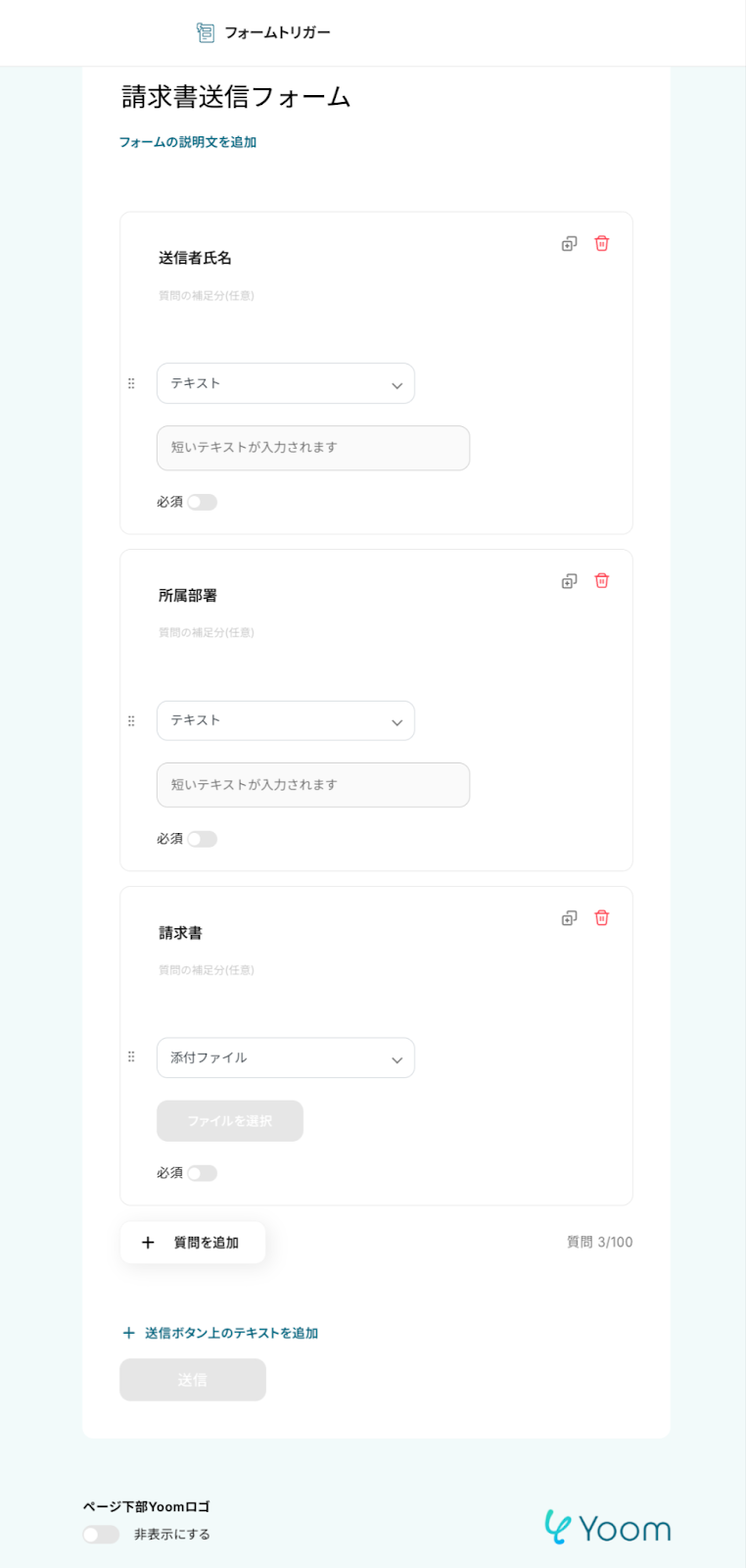 コピーしたテンプレートの、「請求書送信フォーム」をクリックしてください。