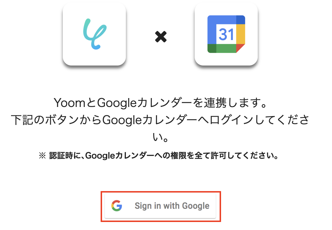 「Sign in with Google」をクリックし、Yoomと連携するGoogleアカウントを選択したら連携完了です!