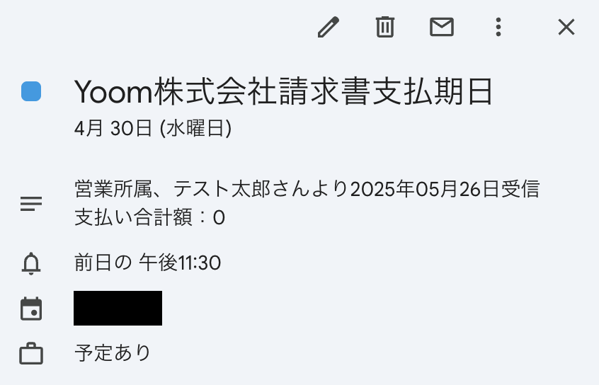 フォームの回答や請求書の情報を反映した状態で、予定が作成されていますね!