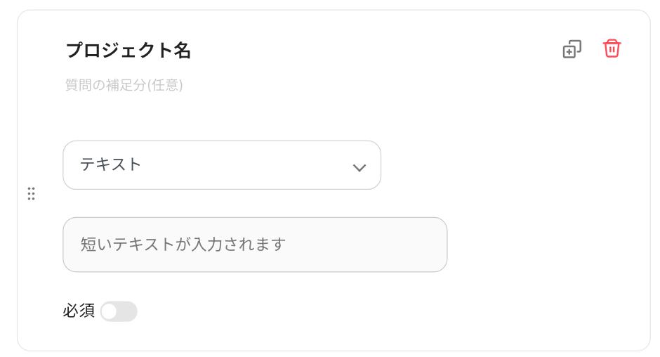 質問形式は、上記の画面では「テキスト」と設定されていますが、プルダウンを開いて表示される項目の中から選ぶことができます。