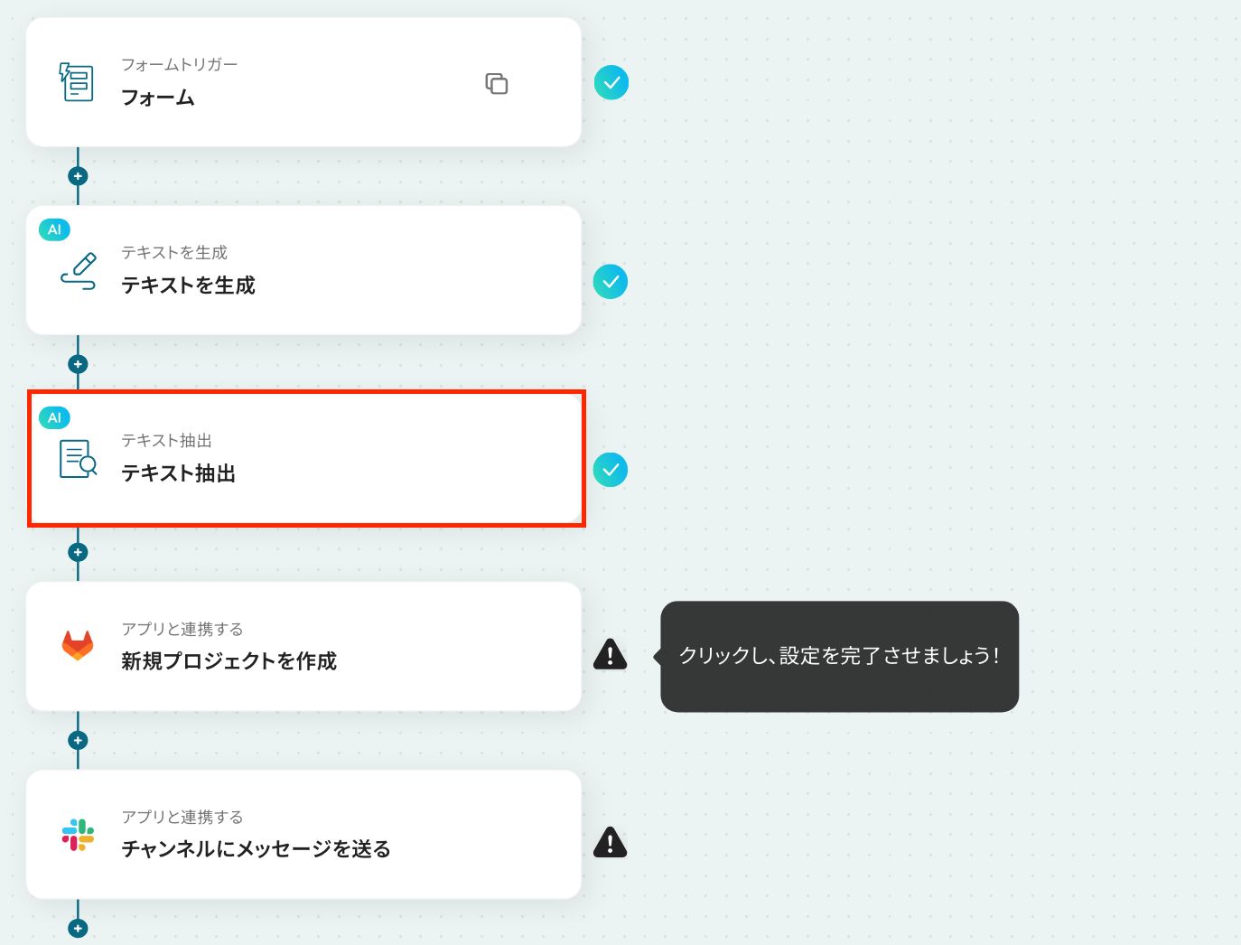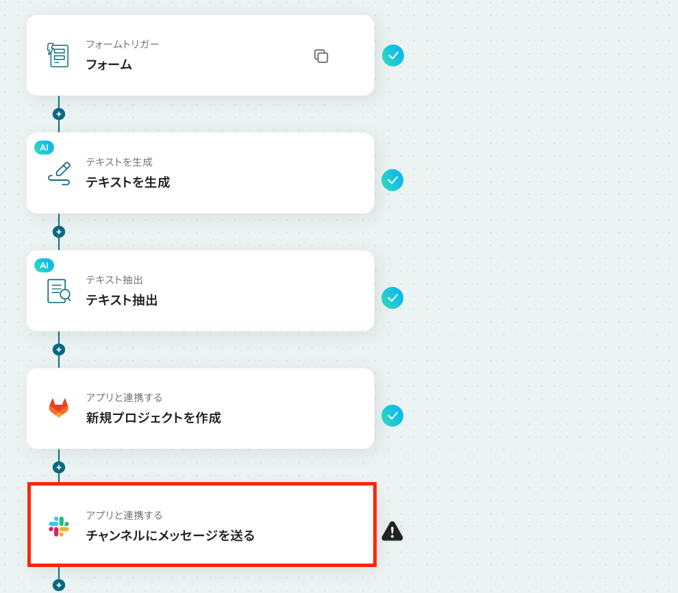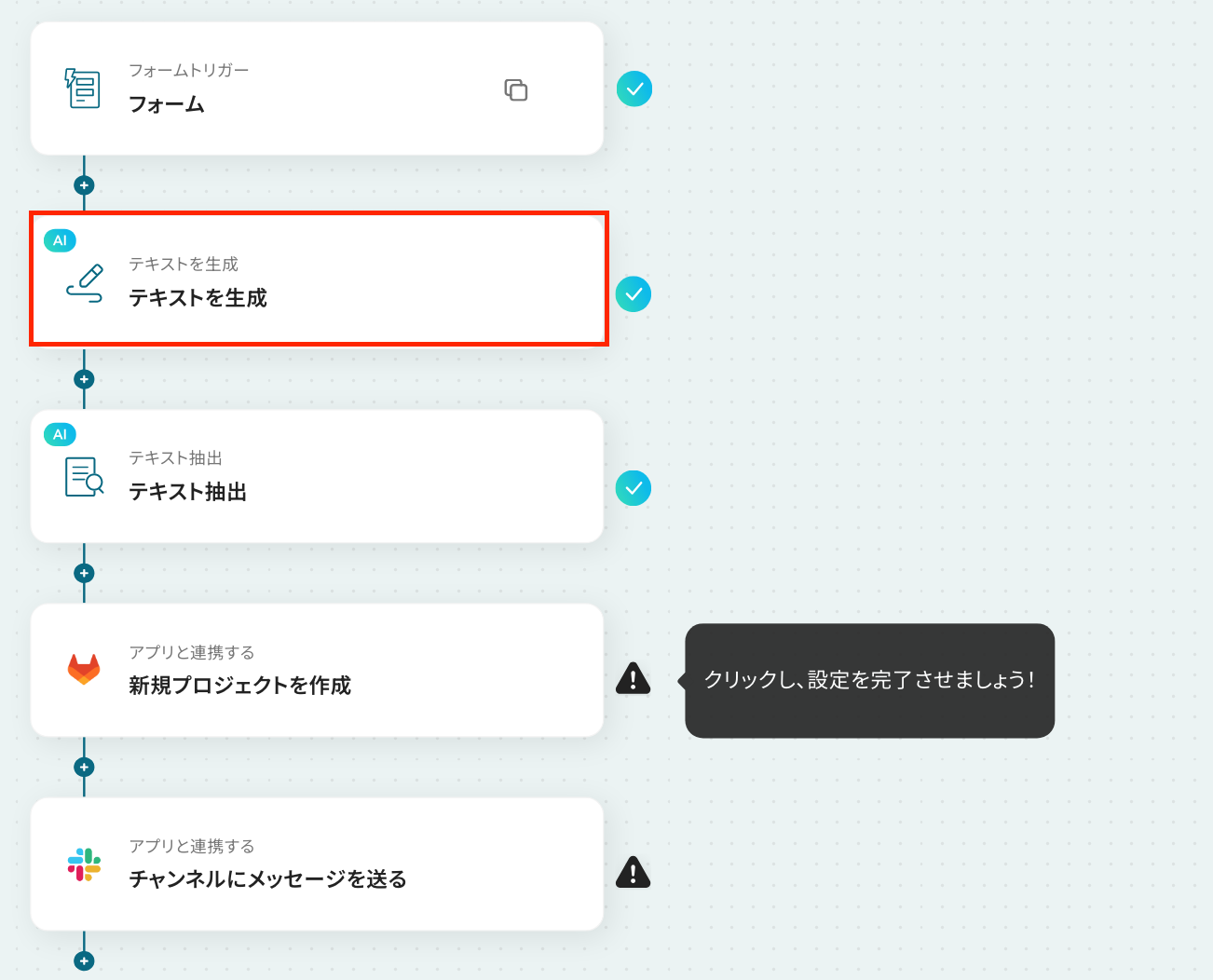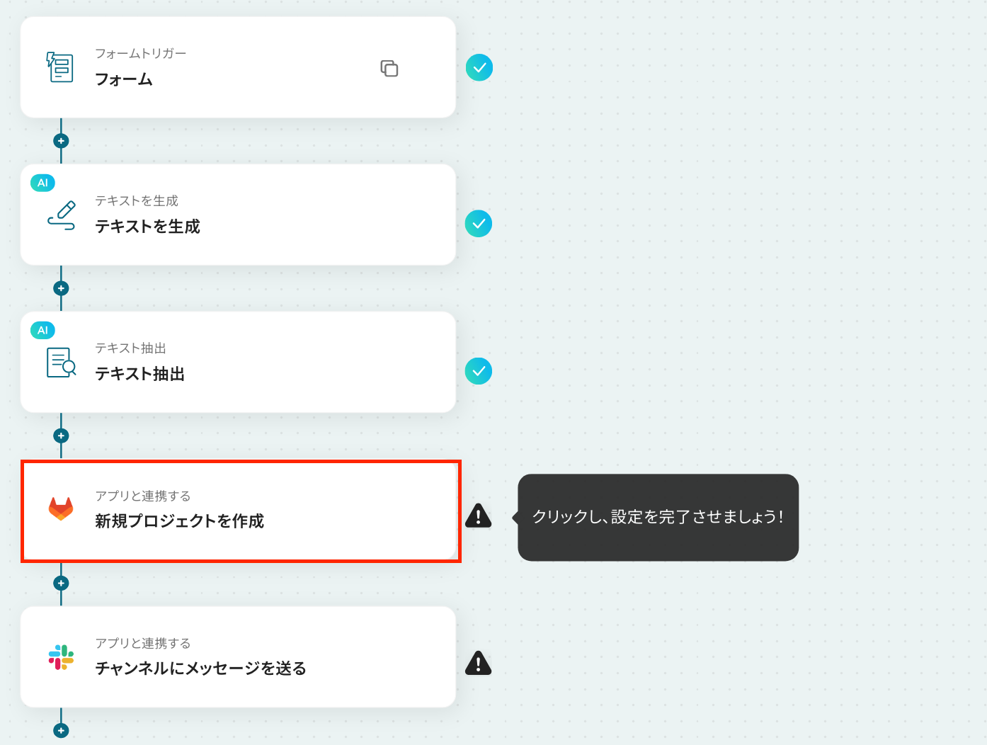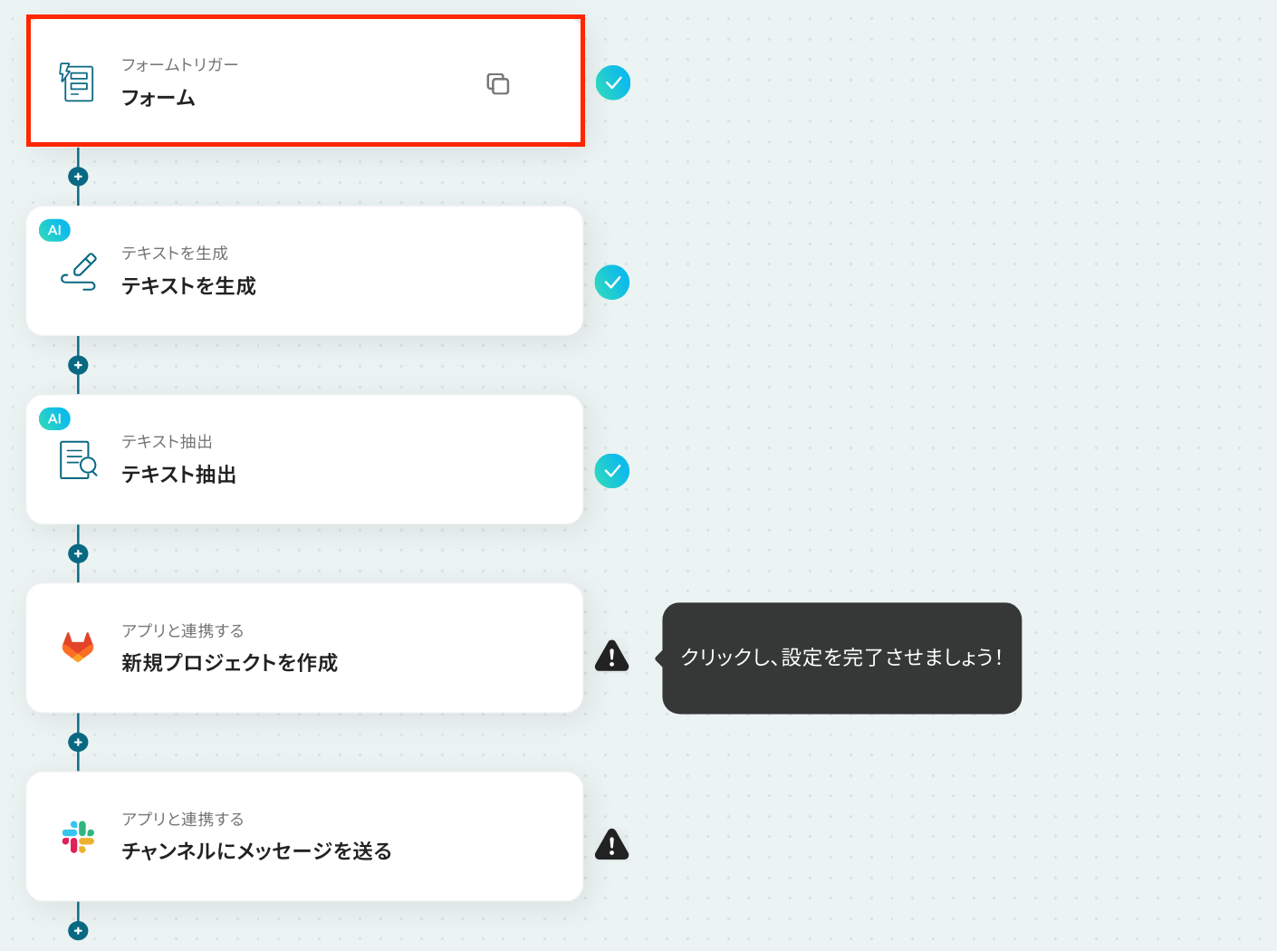 - Yoomフォームのトリガー設定とAI・GitLab・Slackのアクション設定