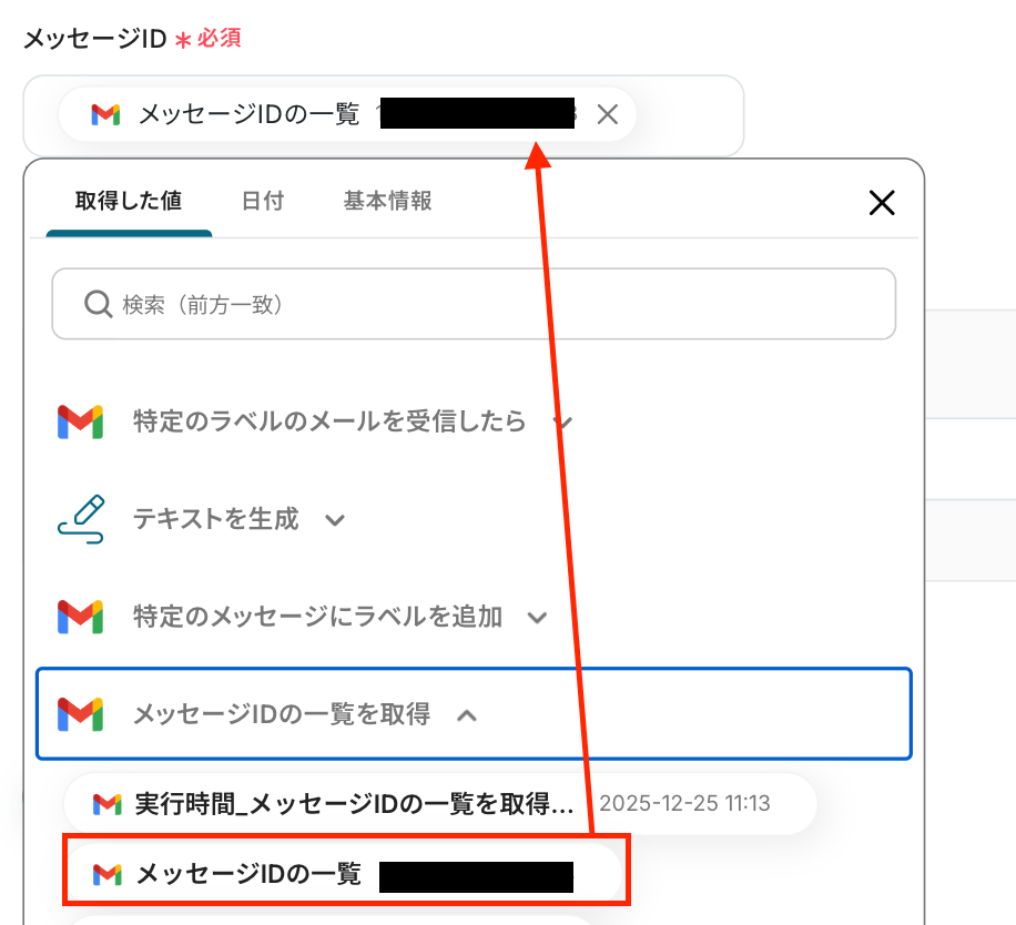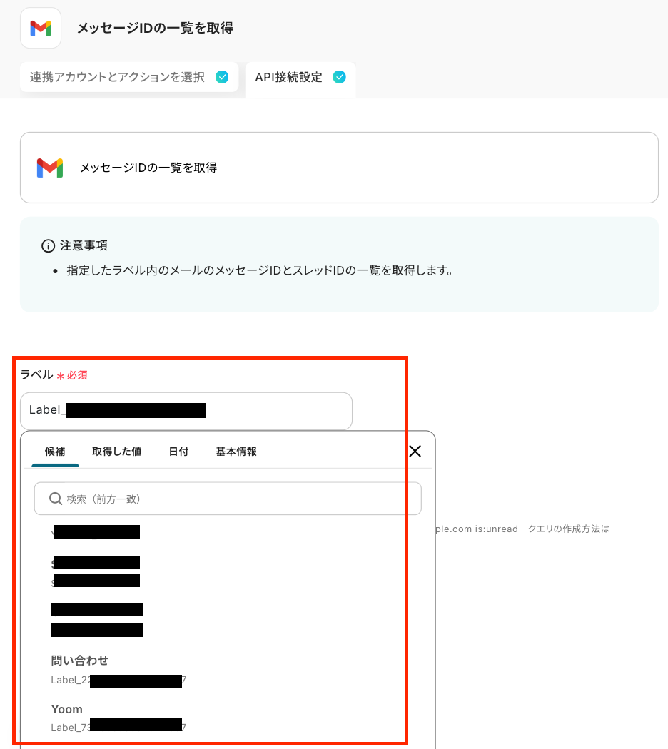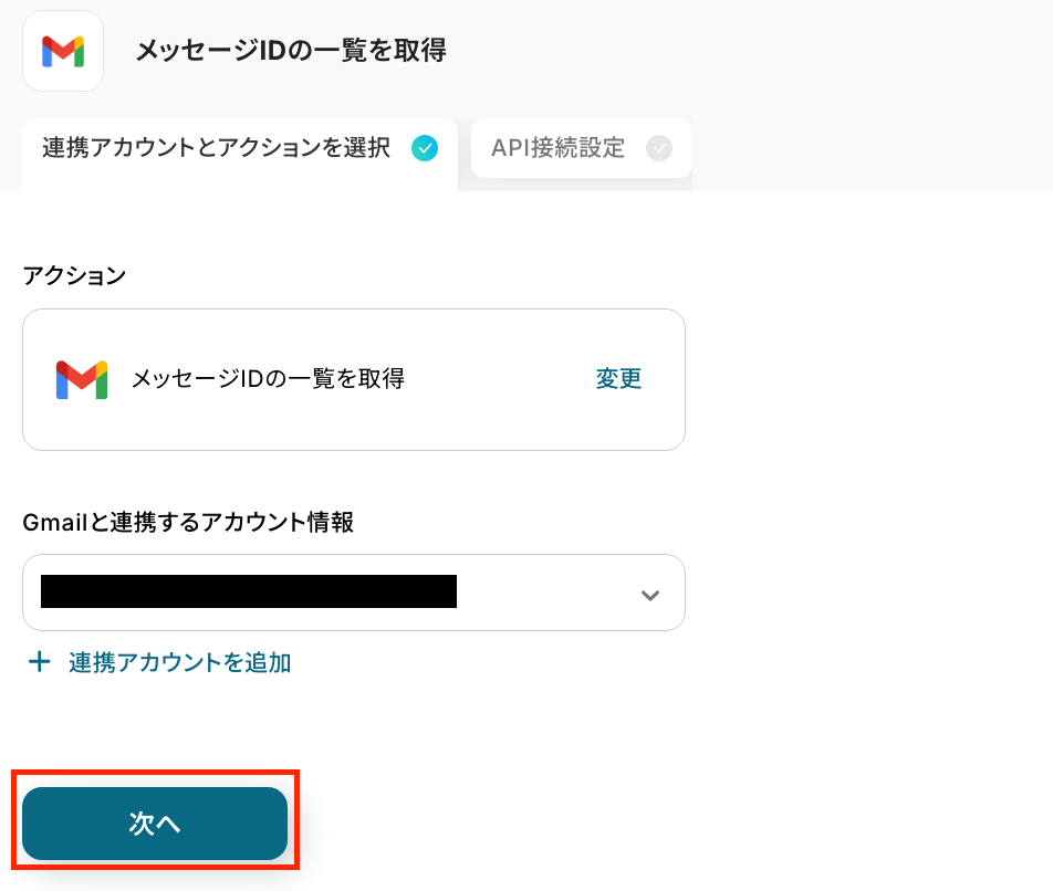 ここでは、GmailのメッセージIDの一覧を取得する設定を行います。