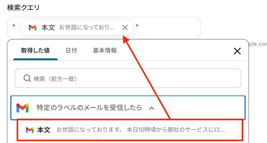 ここではGmailのトリガー設定で選択したラベルを選択してください。