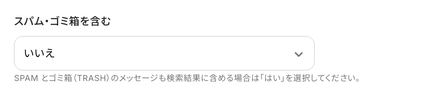スパム・ゴミ箱を含む:プルダウンから選択してください。
