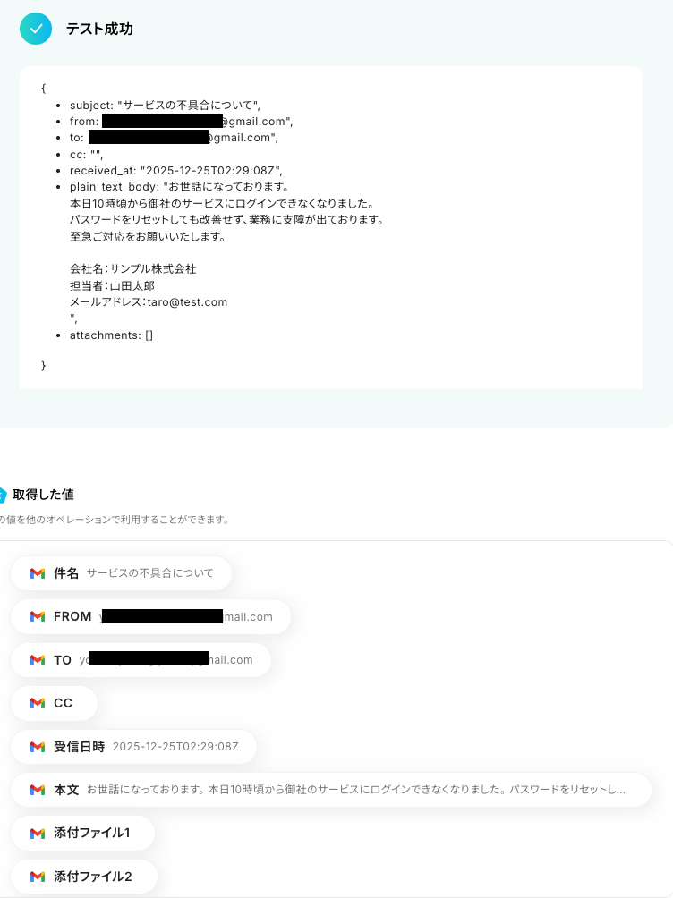先ほどテスト送信したメール内容が反映されていれば、OKです!