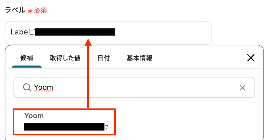 ラベル:入力欄をクリックして表示される候補から選択します。