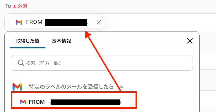 To :通知先となるメールアドレスを入力 ※Gmailのトリガー設定で取得した値を設定します