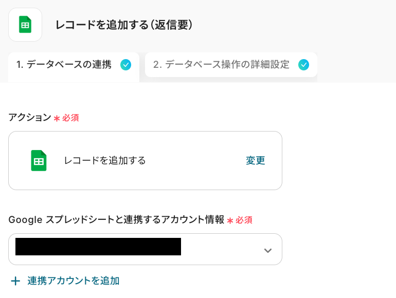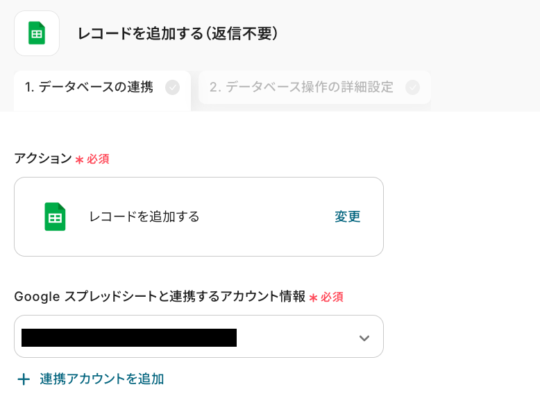次の画面で、レコードを追加したいスプレッドシートIDとシート名を設定していきます!