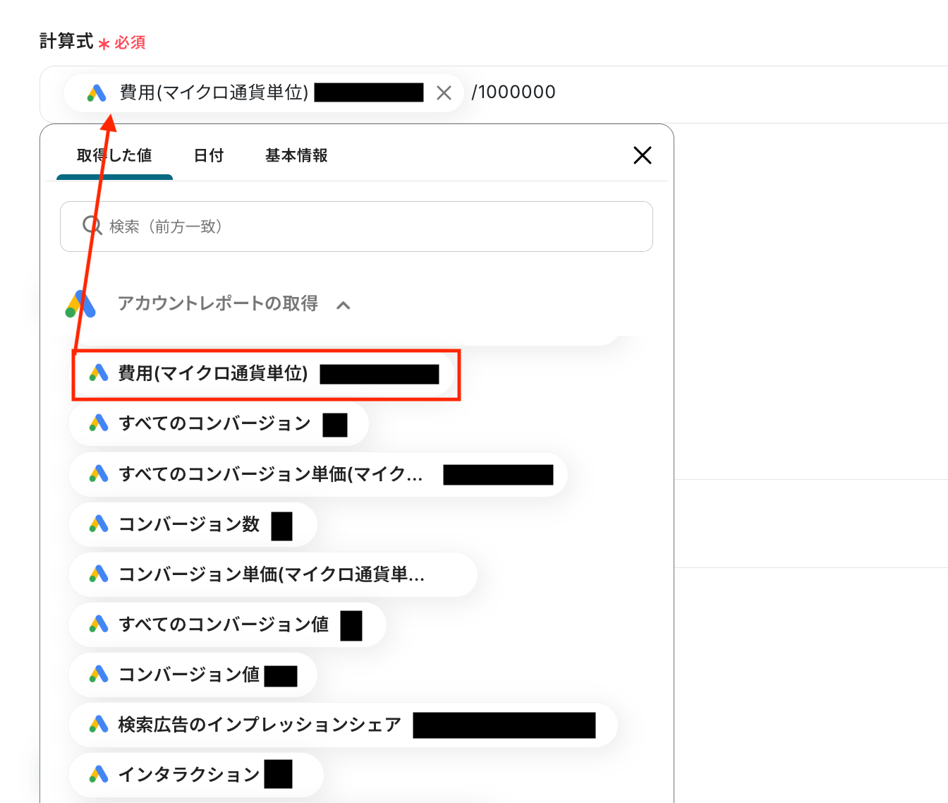 ステップ5:計算処理で費用を通常の通貨単位に変換 続いて、前のステップでGoogle Adsから取得したアカウントレポートから、費用を通常の通貨単位に変換する設定を行いましょう。