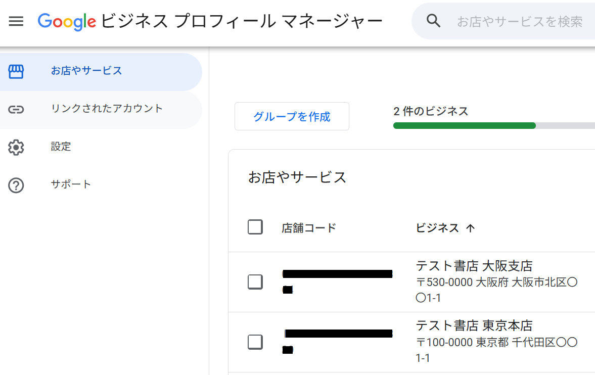 ステップ3:Googleビジネスプロフィールのアクション設定 今回は例として、以下の店舗のロケーション情報を取得する想定で進めます。