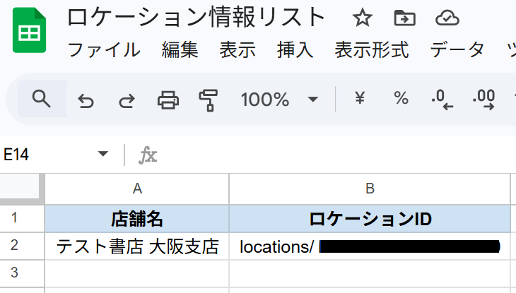 用意したシートに、Googleビジネスプロフィールのロケーション情報が自動で記録されました!