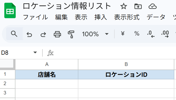 ステップ5:Google スプレッドシートのアクション設定 ステップ3で取得したロケーション情報を、Google スプレッドシートに1行ずつ記録する設定をします。 準備として記録するためのシートを用意しましょう。