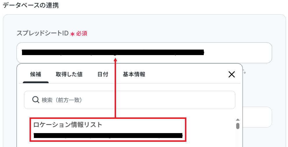 次に、先ほど用意したシートのスプレッドシートID を候補から選択しましょう。