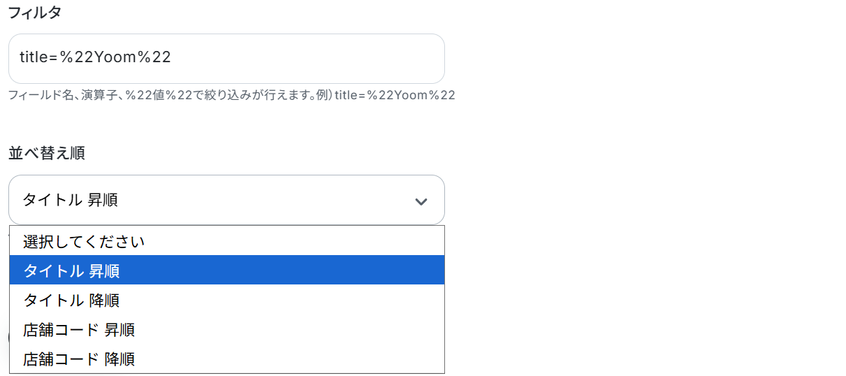 続けてビジネス情報のリスト結果を絞り込む を参考に、任意でフィルタ を入力してください。 最後に、こちらも任意で並べ替え順 をプルダウンから選択しテストしましょう。