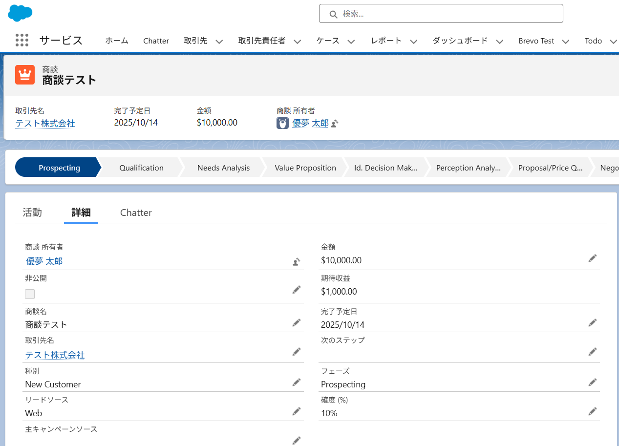 はじめにSalesforceでテスト用の商談を登録しましょう。