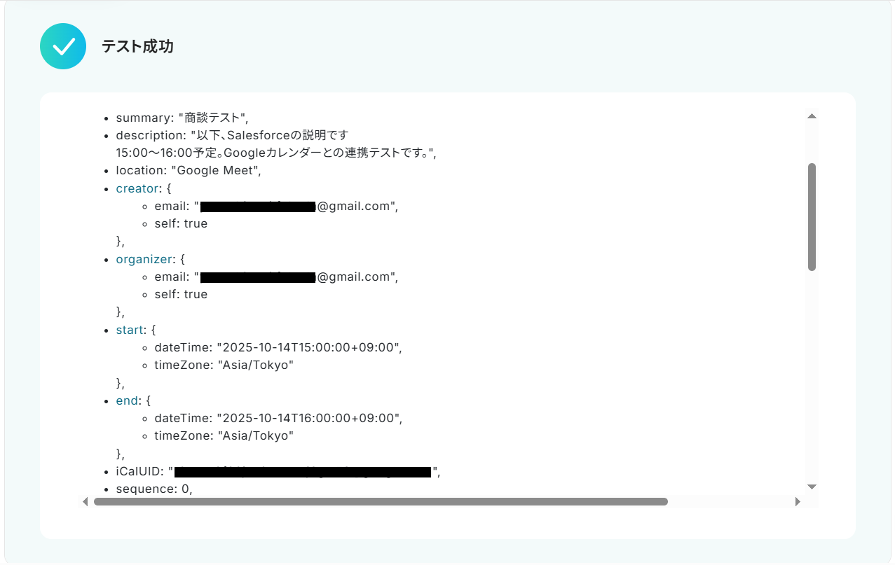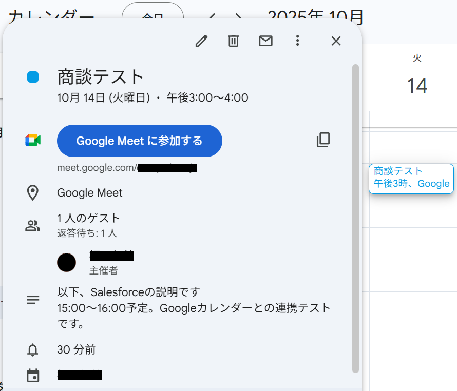 この時、タイトルまたは説明欄に商談の開始・終了時刻を含めるようにします。