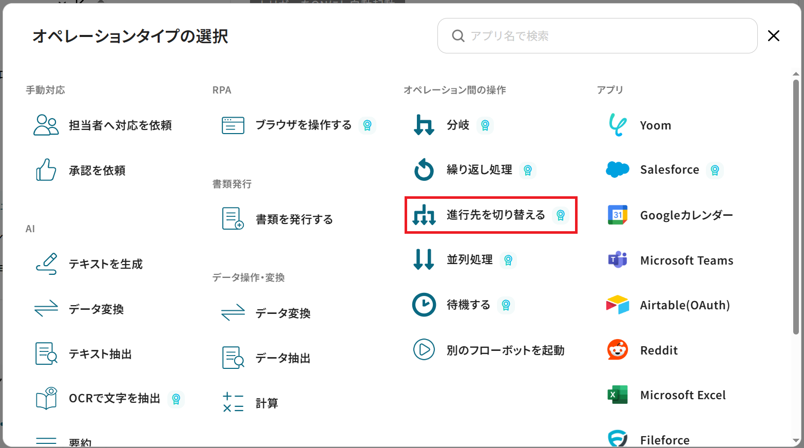 ※「進行先を切り替える」機能(オペレーション)は、ミニプラン以上の有料プランでのみ利用できます。