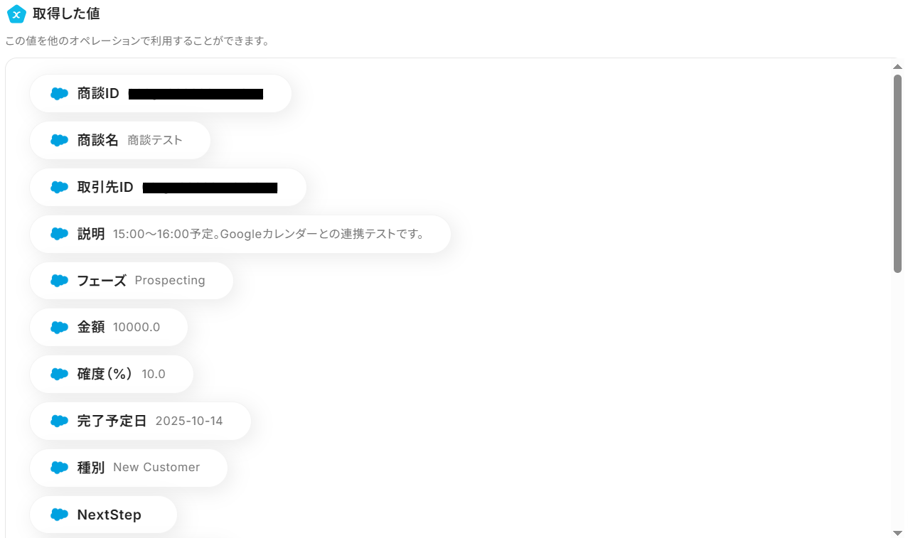 成功したら保存しましょう。ここで取得した値を次以降のステップで活用します。