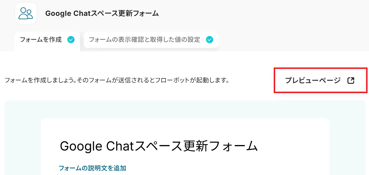 フォームが完成したら一旦ページ上部に戻り「プレビューページ」から内容を確認しましょう。
