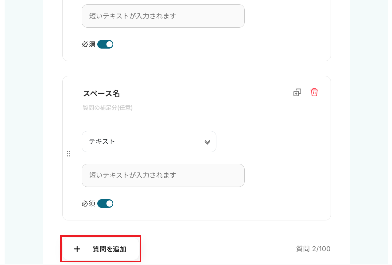 まず、質問の項目名や説明文・補足事項などを入力しましょう。
