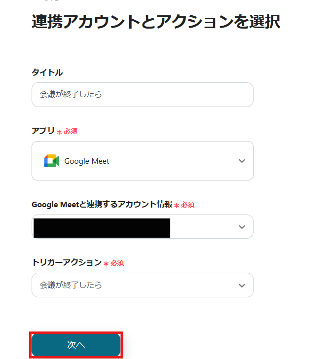 Google Meetのトリガー設定